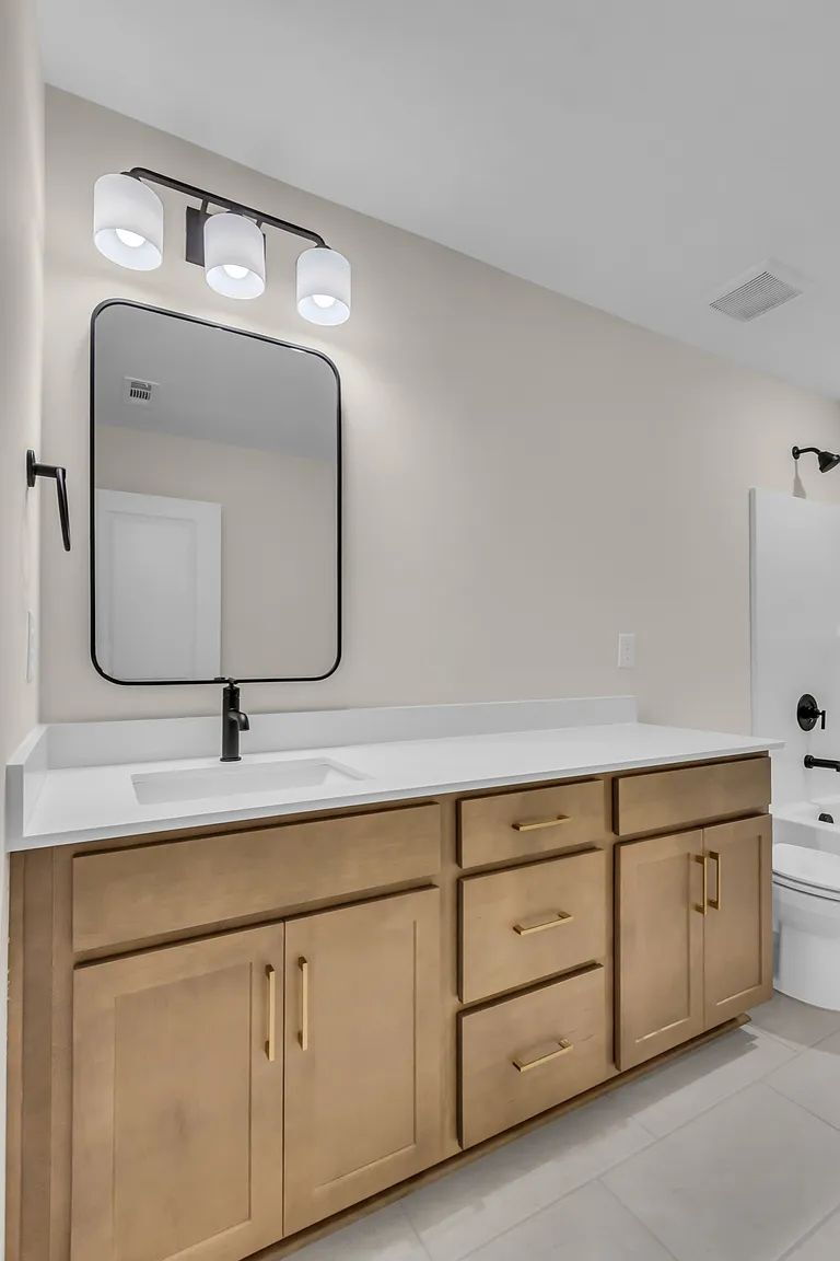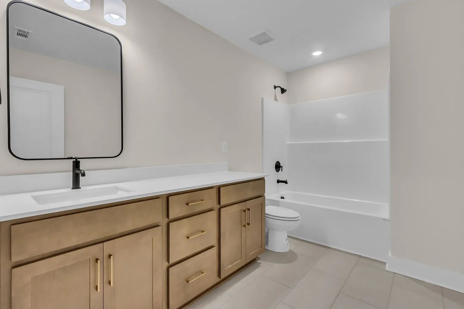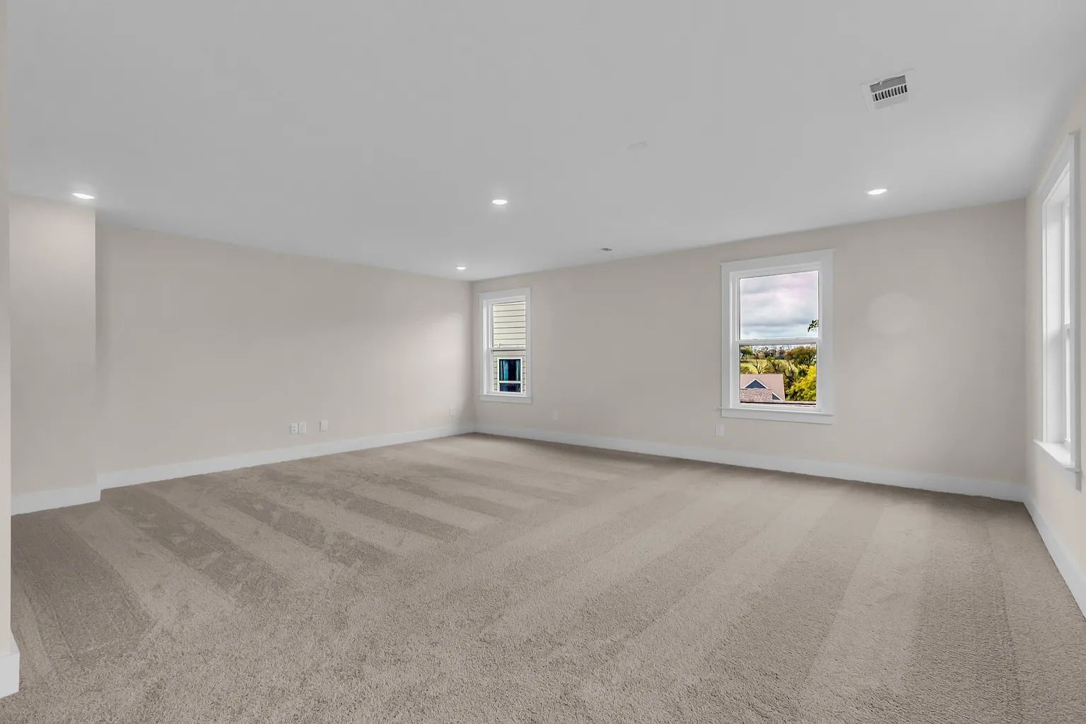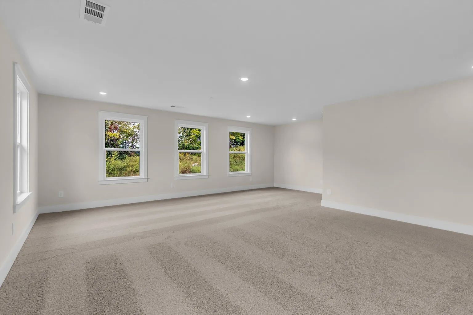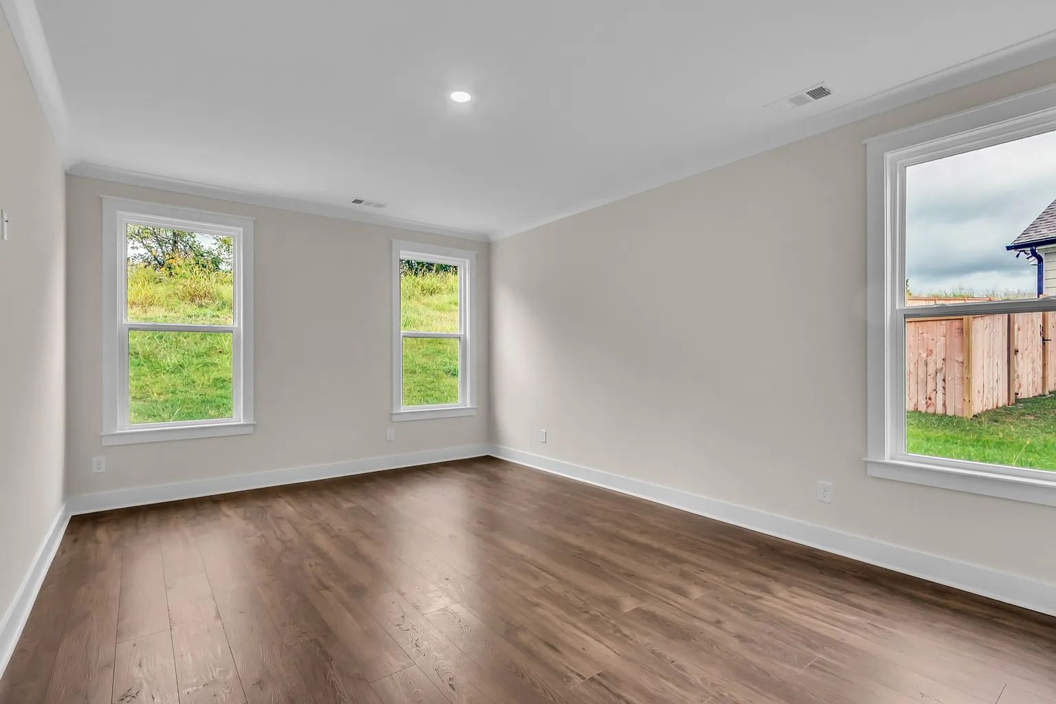 The primary suite delivers a spa-like retreat with a soaking tub, frameless walk-in shower, and generous walk-in closet. A flexible front room allows for a home office or formal dining, while the upstairs features a large bonus room, secondary laundry room, and ample storage.