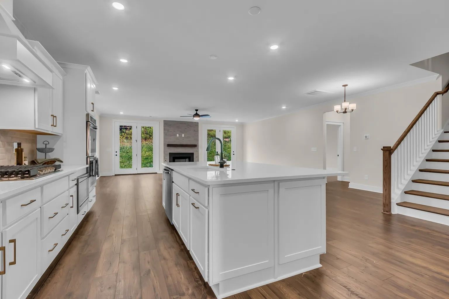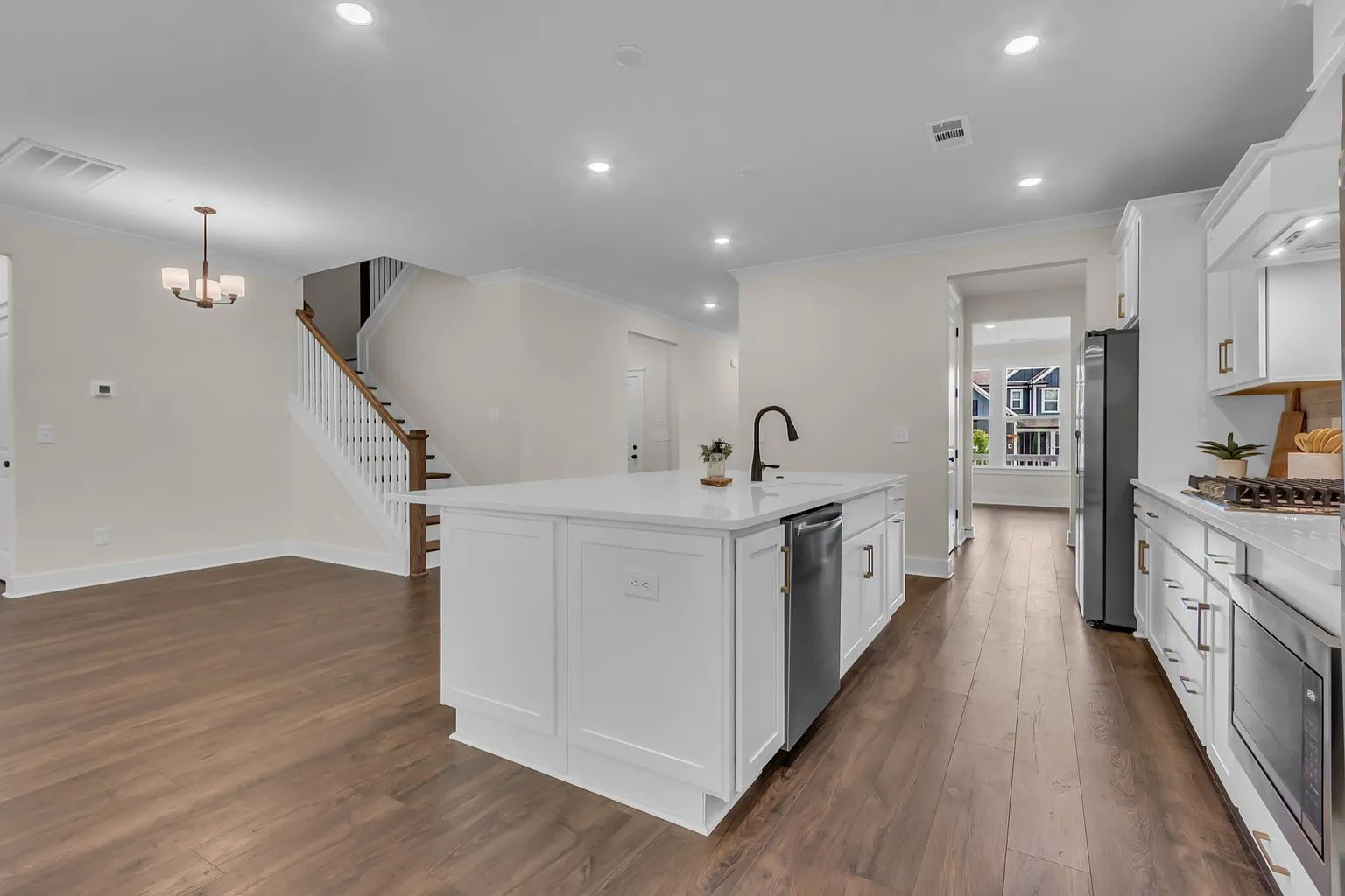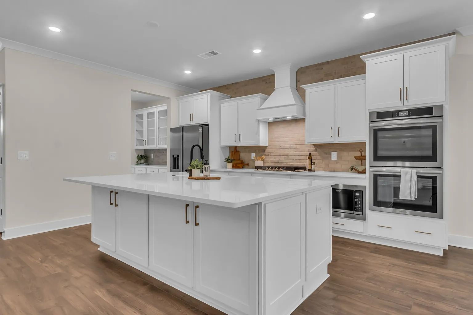 Inside, designer touches shine at every turn: beautiful trim work, durable flooring, and a gourmet chef’s kitchen with quartz countertops, upgraded cabinetry, stainless steel appliances, a butler’s Pantry, and an oversized island ideal for gatherings.