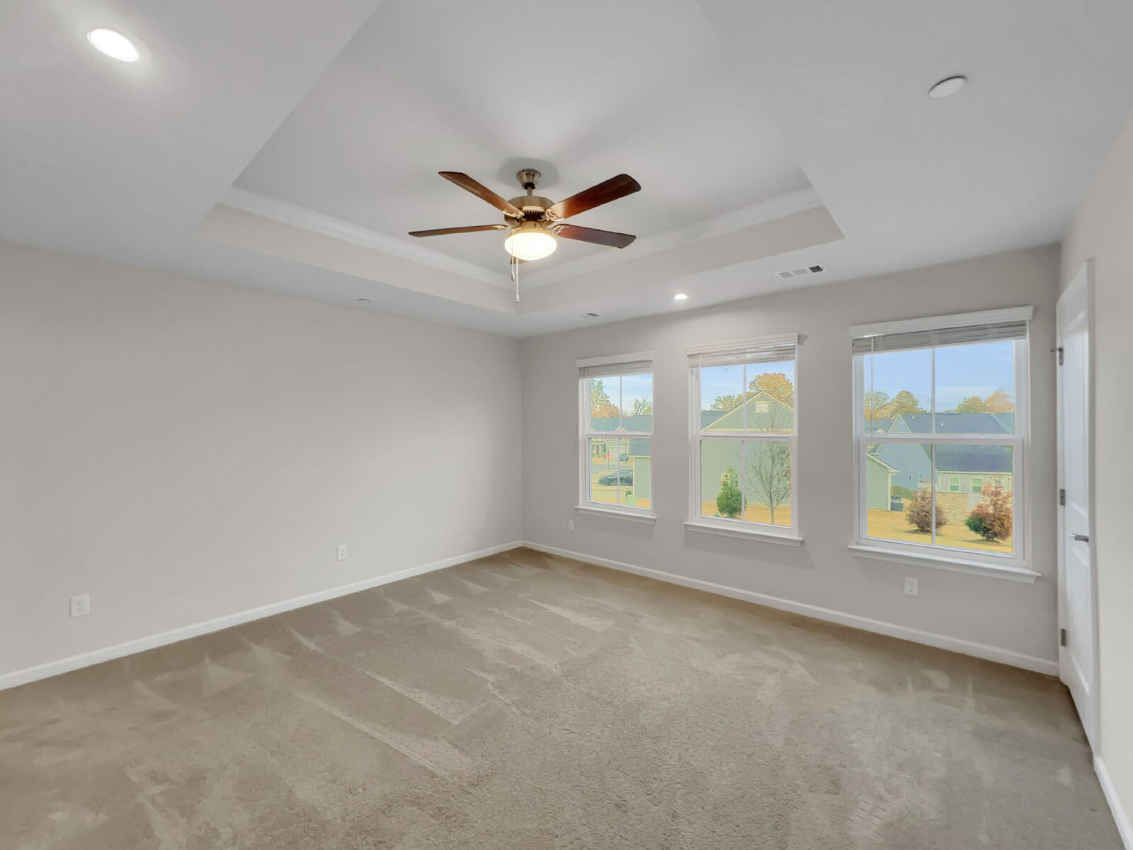 Upstairs, all bedrooms are thoughtfully positioned for privacy, including a generous owner’s suite with a tray ceiling and an oversized closet. Ample storage is found throughout the home, offering practical convenience.
