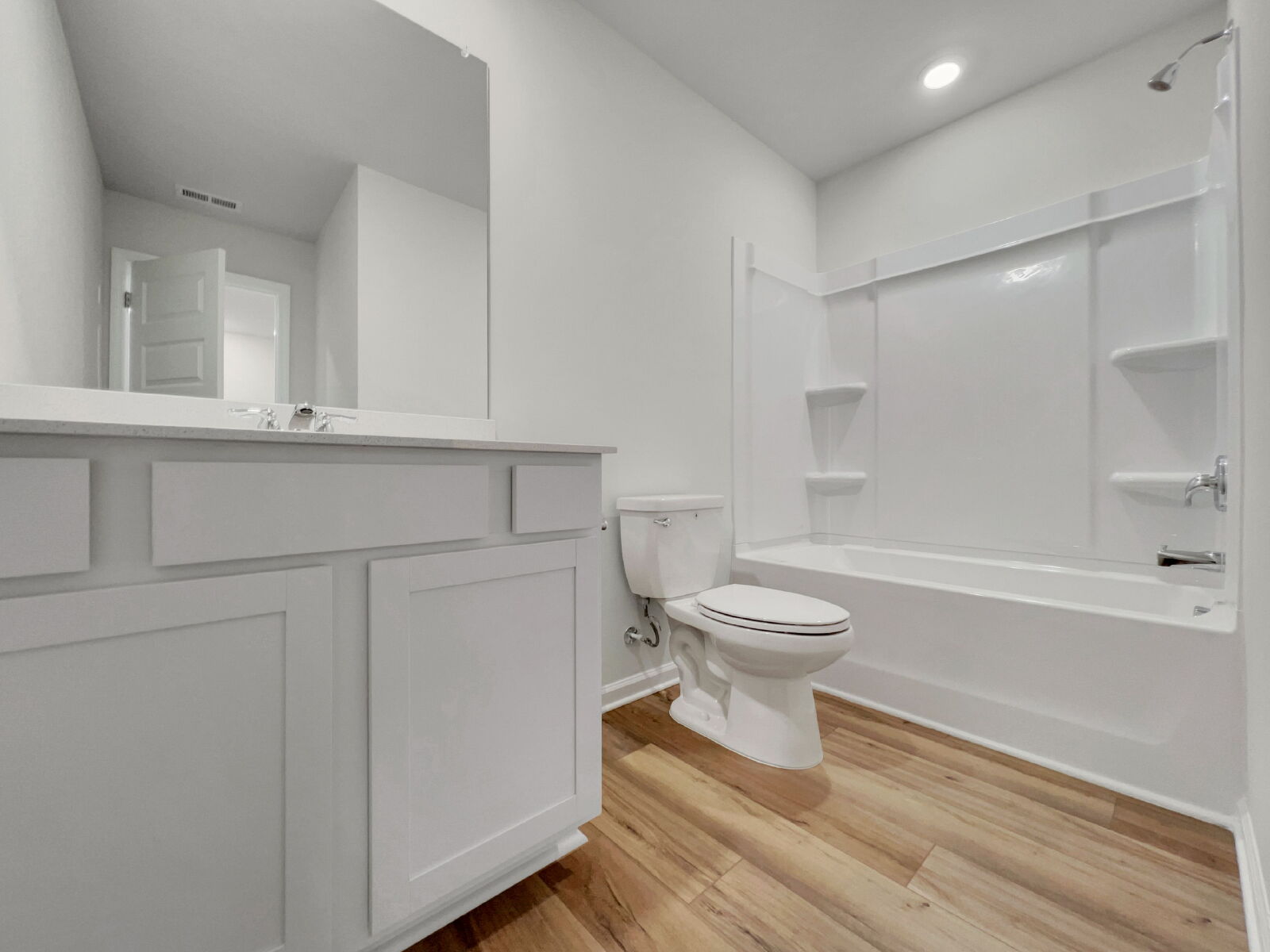 Durable LVP plank flooring flows throughout the main living areas, offering both beauty and practicality. Upstairs, generously sized bedrooms provide the ideal retreat, while each bathroom is finished with quartz countertops and LVT flooring for a clean, elevated feel.