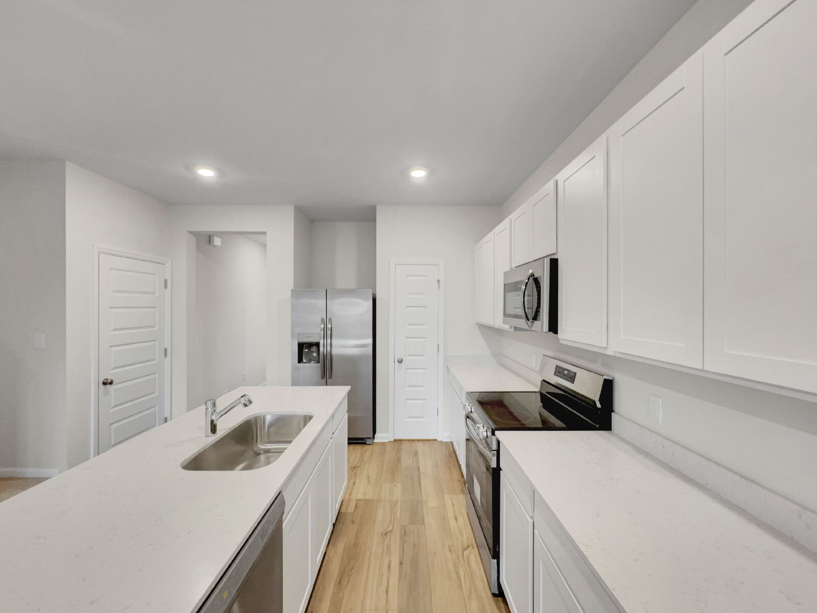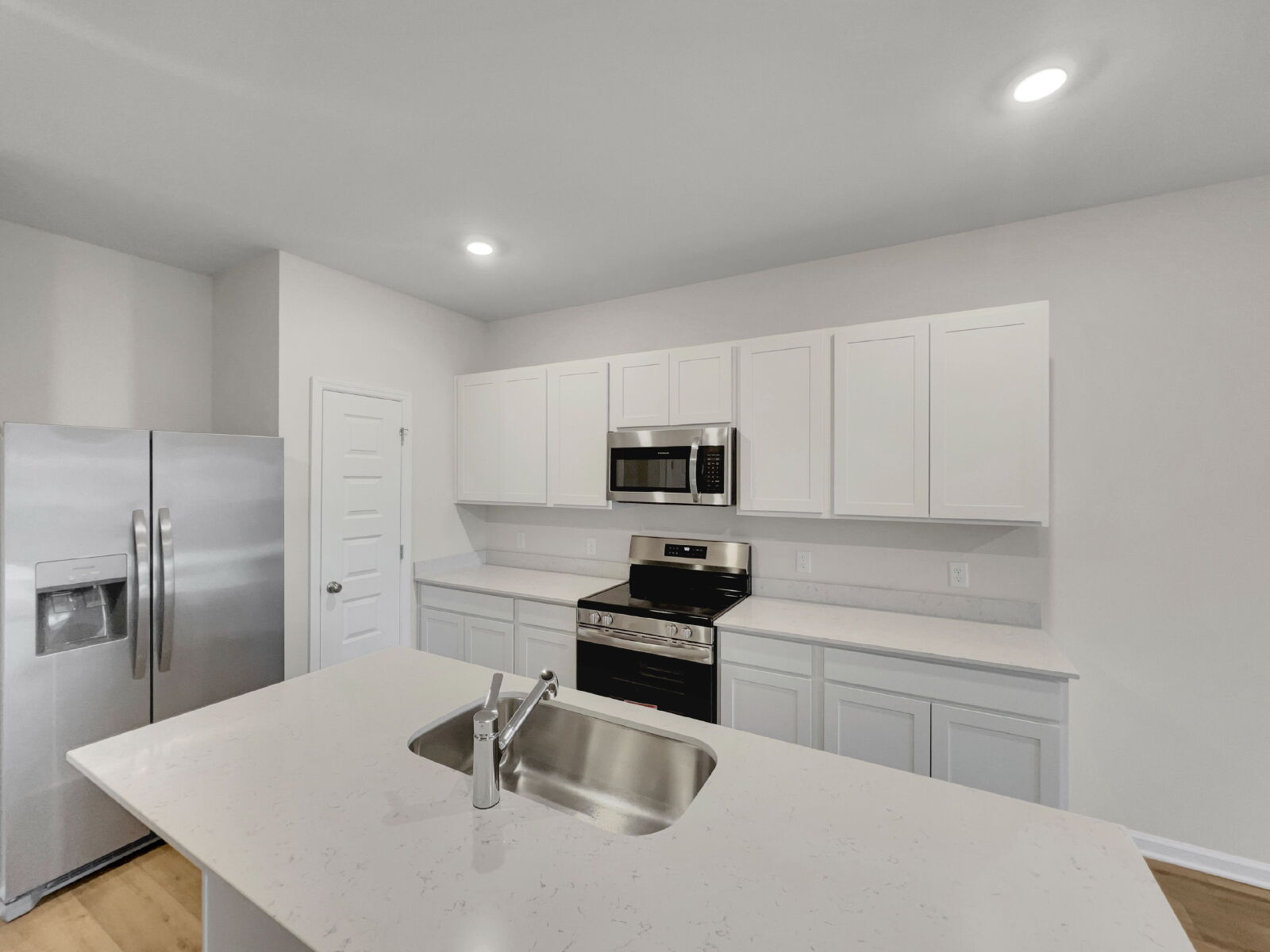 Step into the Rainier—where thoughtful design and modern finishes come together to create the perfect blend of comfort, convenience, and style. This beautifully crafted townhome features an open-concept kitchen that truly anchors the main level, complete with a large island, white shaker-style cabinetry, sleek quartz countertops, and a full stainless steel appliance package—including the refrigerator.