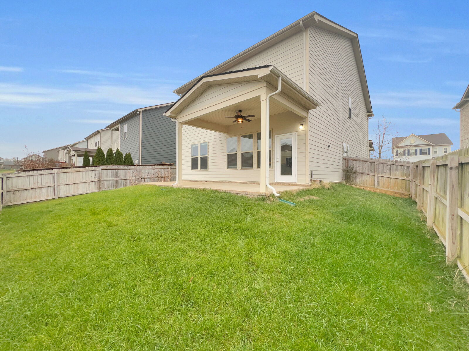 Outside, you'll find beautifully maintained landscaping, durable fiber cement siding, and an oversized covered back patio—the perfect spot for morning coffee, evening unwinds, or year-round entertaining.